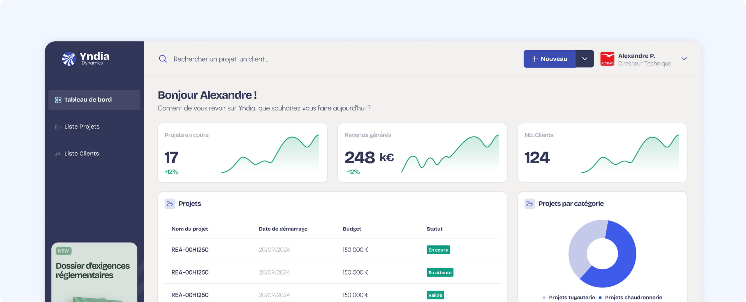 Yndia Dynamics est une plateforme SaaS tout-en-un dédiée au chiffrage et à la conformité des projets industriels.